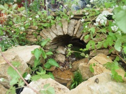 石や植物、すべてがそのまま「庭」になる本物の庭を見せる展示となりました。何度眺めても飽きない、イギリスで泊まったアリソンさんのB&Bの庭のように、どの角度から見ても美しい庭です。