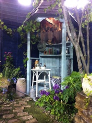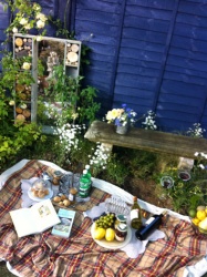 本物の石材は50年、100年経っても庭を美しく形作ります。おばあちゃんが好きだった場所で孫がワイン片手に読書しながら楽しく過ごしているという設定。読みかけの本。食べかけのスコーン。ベンチの前にはワイングラスのホルダーも。おばあちゃんと同じように庭が好きな女の子がこの場所には住んでいます。アンティークの小物を飾り、おばあちゃんから受け継いだ庭を演出。古いものを大切にするイギリスの一般家庭を表現しています。
