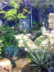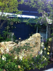 毎年反省を重ね、新しいことに挑戦しつづけた甲斐がありました。本物の材料が放つ魅力を存分に生かせるデザインにするためチームで知恵を出し合い、美しい作品に。全体のコンセプトは欧州建材、石積みは神谷造園、植栽はガーデンズ、ケイズガーデン、アリスガーデン。植木は豊光園。今年は木工でもそれぞれの造園会社がサポートし、ショウガーデンとして十分な仕上がりとなりました。