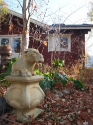 今年はもう少し手を入れて庭として利用出来るくらいにすることが目標。置物はイギリスの想像上の動物。沼地の生き物だそうです。