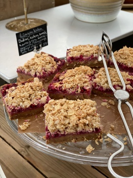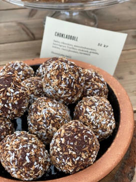 温室の中のカフェはいつにも増して賑やかです。焼菓子の種類も夏より多い?冬に休業する観光地が多い中、ほぼ1年中開いているローゼンダールガーデンは冬の人気スポットのよう。早めにテーブルについて正解。次から次へと人が増えてきます。スモーブロー(スウェーデンのオープンサンド)やパンとスープでランチ。お菓子は食べたいものをひとつずつ取って味見。焼菓子のバリエーションの方が多くて迷います。