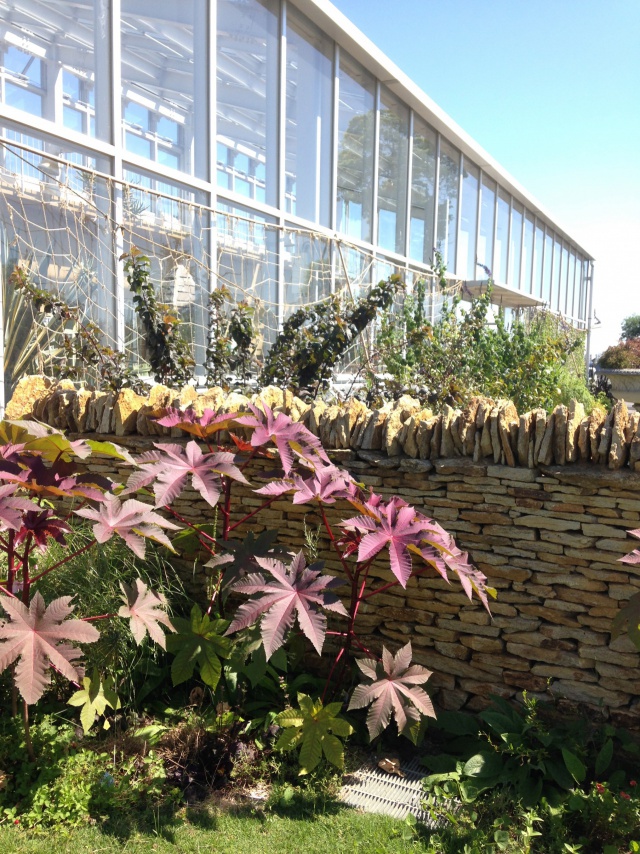 巨大な葉っぱが魅力的なトウゴマ。存在感たっぷりです。