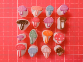 たべれるキノコから毒キノコまで…アイシングクッキーでひとつずつ描きます。