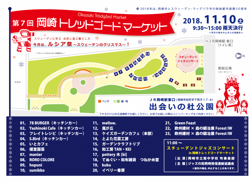 岡崎市がスウェーデンのウッデバラ市と姉妹都市であることをアピールし(2018年は姉妹都市提携50周年)、スウェーデンの文化紹介を通じて、