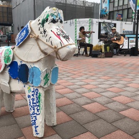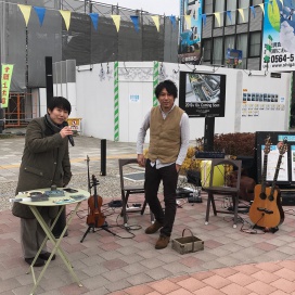 また、小松大さん(3月に出演。4月からは岡崎トレゴの音楽プロデューサー)とフレイトレシピ山田さんによるゲリラライブで会場はますます北欧ムードに。山田さんによる巧みな出店者インタビューも好評でした。