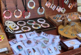 岡崎市商工会議所主催のファーマーズマーケットを中心に活動。布小物、刺繍小物、アクセサリー等すべて手作業で一つ一つ丁寧に作製しています。