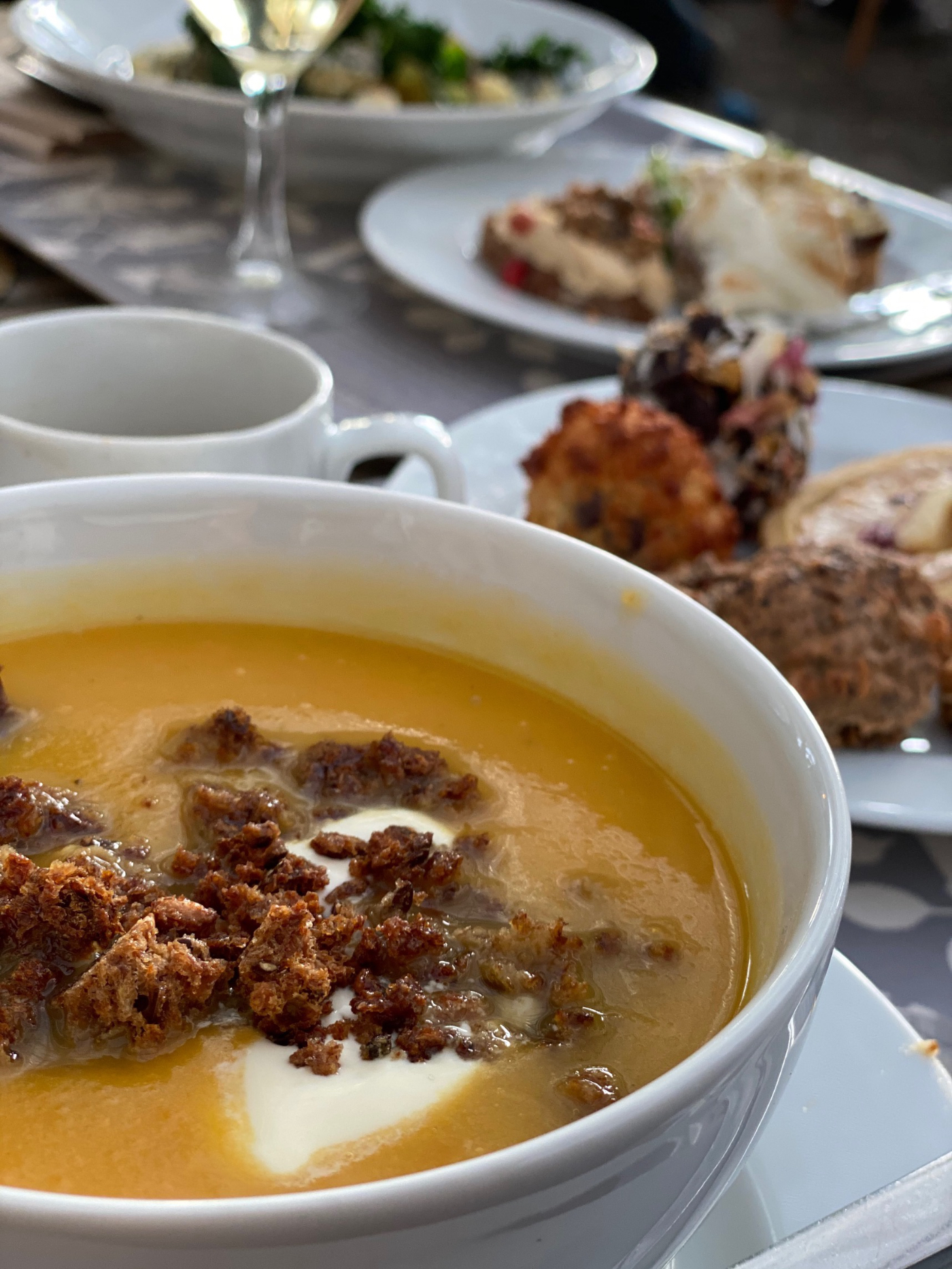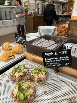 温室の中のカフェはいつにも増して賑やかです。焼菓子の種類も夏より多い?冬に休業する観光地が多い中、ほぼ1年中開いているローゼンダールガーデンは冬の人気スポットのよう。早めにテーブルについて正解。次から次へと人が増えてきます。スモーブロー(スウェーデンのオープンサンド)やパンとスープでランチ。お菓子は食べたいものをひとつずつ取って味見。焼菓子のバリエーションの方が多くて迷います。